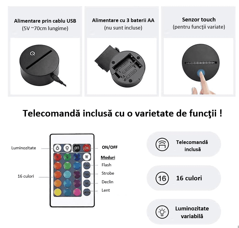 • CADOUL INEDIT SI PERFECT – aceasta lampa 3D va fi cadoul apreciat si adorat atat de copii, cat si de familie sau prieteni putand fi folosita si ca lampa de veghe